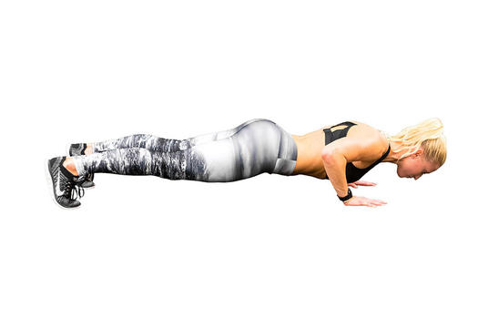 Лягте на живот и поднимите ноги и руки от пола, руки прямо перед вами. Подтяните локти вниз к талии, вернитесь в исходное положение, и повторите.