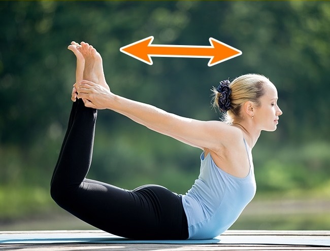 Ложитесь на живот и потяните руки вперед. Согните спину и одновременно поднимите голову, руки и ноги. Возьмите лодыжки и глубоко вдохните. Оставайтесь в этом положении на несколько секунд. Затем выдохните, расслабляя мышцы и вернитесь в исходное положение. Выполните 1 подход за 60 секунд.