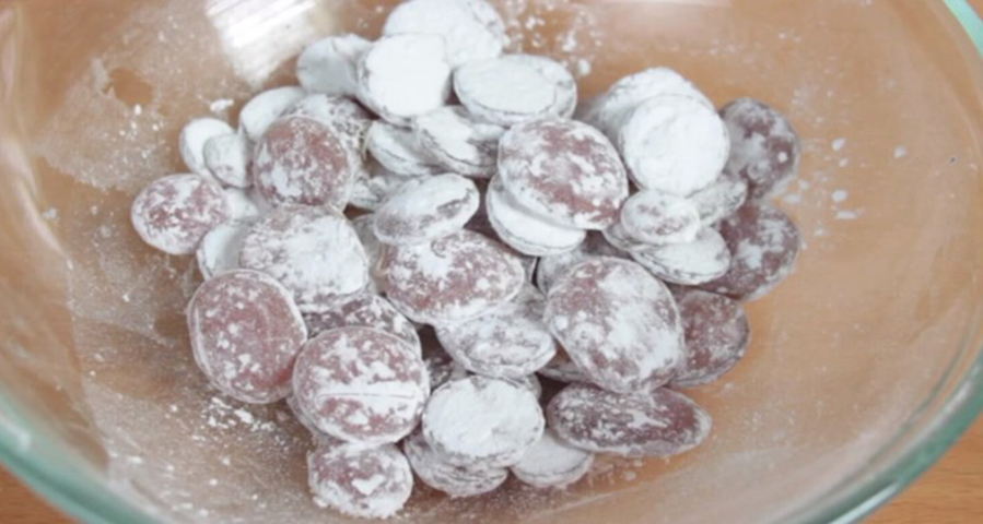 Затем, посыпьте немного сахарной пудрой сверху. Это гарантирует, что леденцы не будут прилипать.