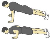 Спина — ровная, колени не выходят за линию носков. Руки — за головой. - Отжимания