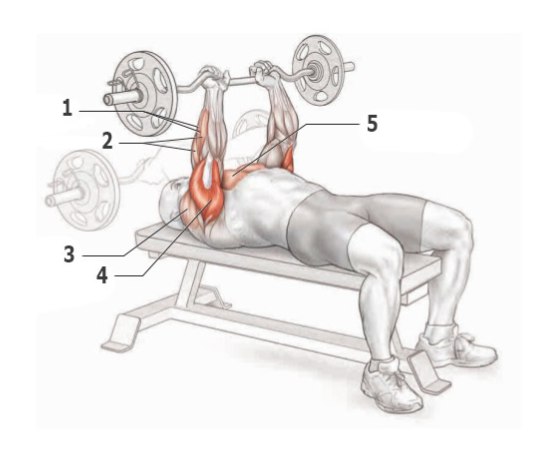 В представленных упражнениях, номером показана работа мышц, по мере вовлеченности их в тренировочный процесс.