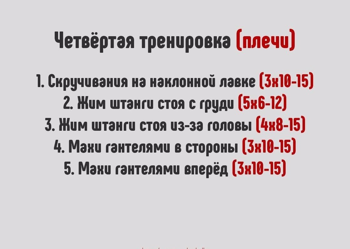 Представляем схему упражнений для набора массы на 4 тренировки в неделю.