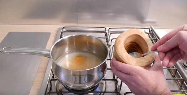 - Возьмите кастрюлю и смешайте в ней сахар и воду.